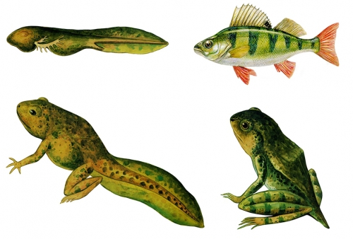 Модель-аппликация Цикл развития костной рыбы и лягушки