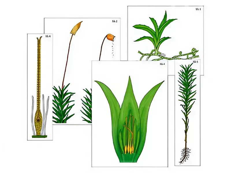 Пособие включает 9 карточек, иллюстрирующих морфологические особенности женских и мужских особей кукушкина льна и этапы его размножения. Карточки ламинированы матовой (антибликовой) пленкой и снабжены магнитными креплениями, что позволяет монтировать схемы на магнитной доске или экране для динамических пособий.