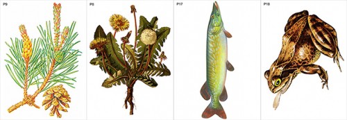 4. На карточках № Р9-Р12 – растения смешанного леса (сосна, копытень, шиповник, клен).