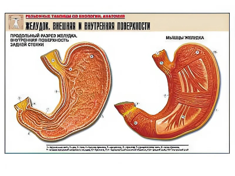 Рельефная таблица "Желудок. Внешняя и внутренняя поверхности" (формат А1, матовое ламинирование) - fgospostavki.ru - Казань