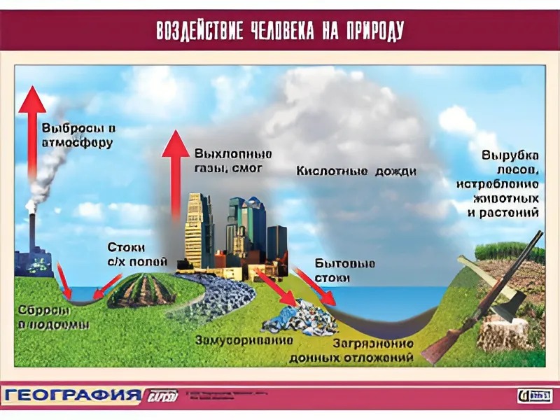 Таблица демонстрационная "Воздействие человека на природу" (винил 70*100) - fgospostavki.ru - Казань