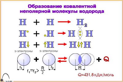 2. Образование ковалентной неполярной молекулы водорода