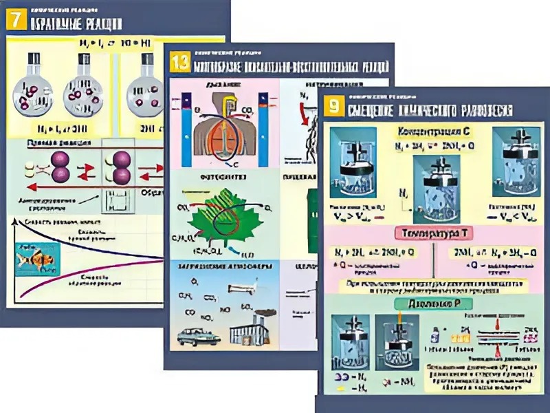 Главная Каталог Демонстрационные учебно-наглядные пособия Кабинет химии Комплект таблиц по химии демонстрационных "Химические реакции" (14 таблиц, формат А1, ламинированные)