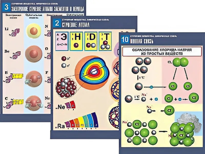 Комплект таблиц по химии демонстрационных "Строение вещества. Химическая связь" (16 таблиц, формат А1, ламинированные) - fgospostavki.ru - Казань