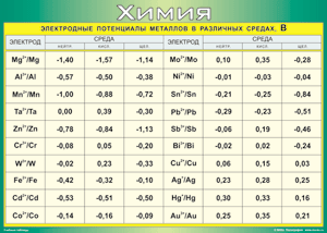 Таблица "Электродные потенциалы металлов в различных средах" (100х140 сантиметров, винил) - fgospostavki.ru - Казань