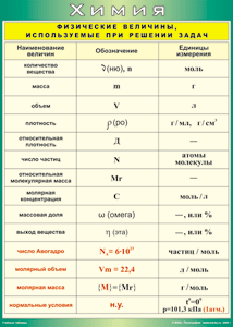 Главная Каталог Демонстрационные учебно-наглядные пособия Кабинет химии Таблица "Физические величины, используемые при решении задач" (100х140 сантиметров, винил)