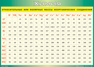 Таблица "Относительные или молярные массы неорганических соединений" (100х140 сантиметров, винил)