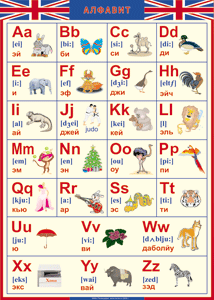 Таблица "Грамматика английского языка. Английский алфавит в картинках (с транскрипцией)" (100х140 сантиметров, винил) - fgospostavki.ru - Казань