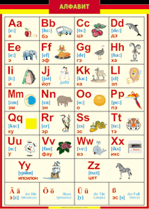 Таблица "Грамматика немецкого языка. Немецкий алфавит в картинках (с транскрипцией)" (100х140 сантиметров, винил)