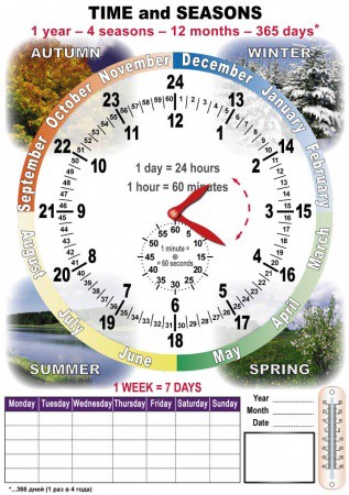 Таблица для кабинета иностранного языка, с подвижными стрелками для иллюстрирования темы «Время», «Единицы времени» (час, минута, секунда)