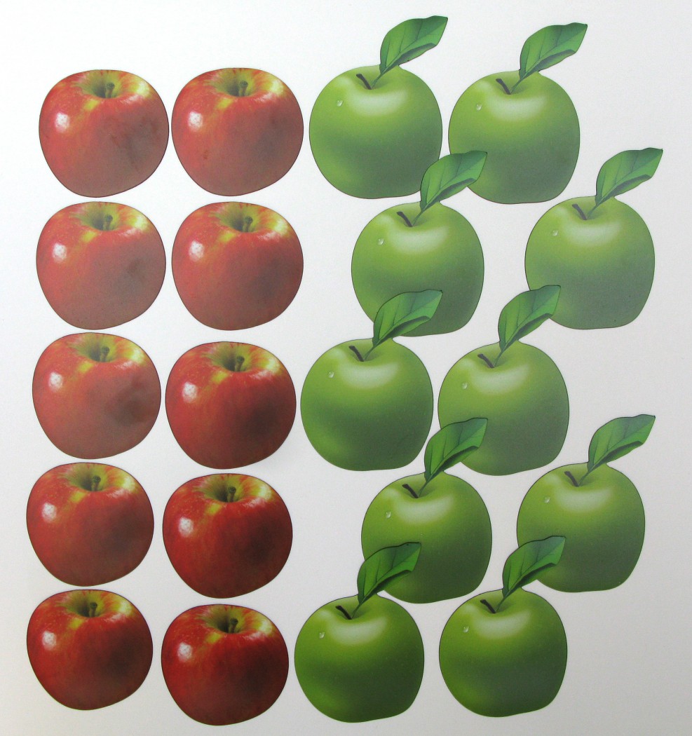 Удобный в работе и правильный с методической точки зрения набор магнитных карточек для устного счета «Яблоки» сделали совсем недавно. В нем 20 яблок: 10 красных и 10 зеленых.