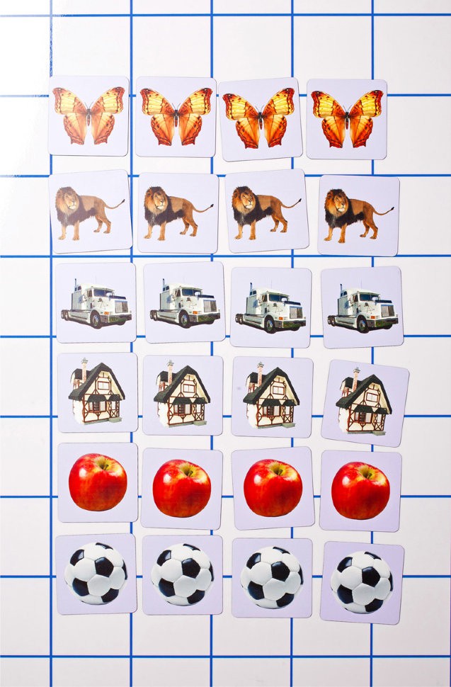 Независимо от тематики в каждом наборе вы найдёте 30 карточек: по 5 карточек каждого из шести изображений.