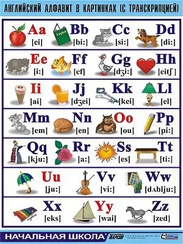 Таблица демонстрационная "Английский алфавит в картинках" (с транскрипцией) (винил 70*100)