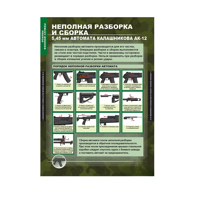 7. Неполная разборка и сборка 7,62 мм. модернизированного автомата Калашникова.