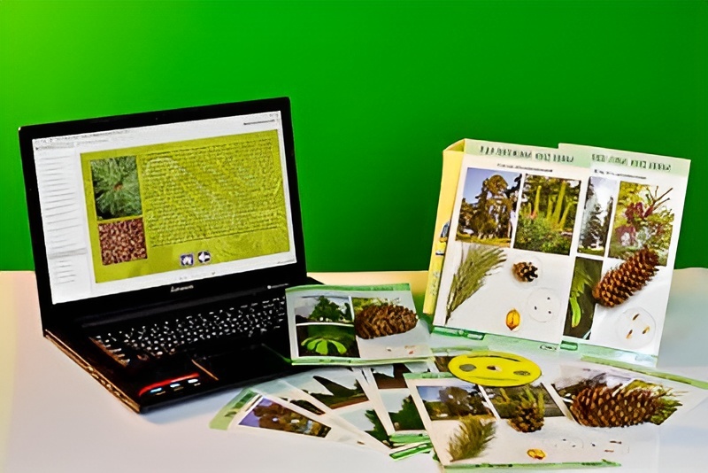 Интерактивное приложение содержит ботанические описания и изображения представленных в коллекции растений, а также информацию о других представителях голосеменных растений, таких как тсуга, сибирский кедр, пихта.