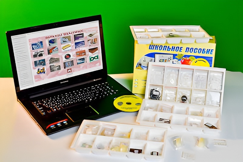 Образцы пронумерованы и положены в коробки с ячейками. Комплектуются ламинированными вкладышами, содержащими информацию о свойствах, производстве и применении пластмасс.