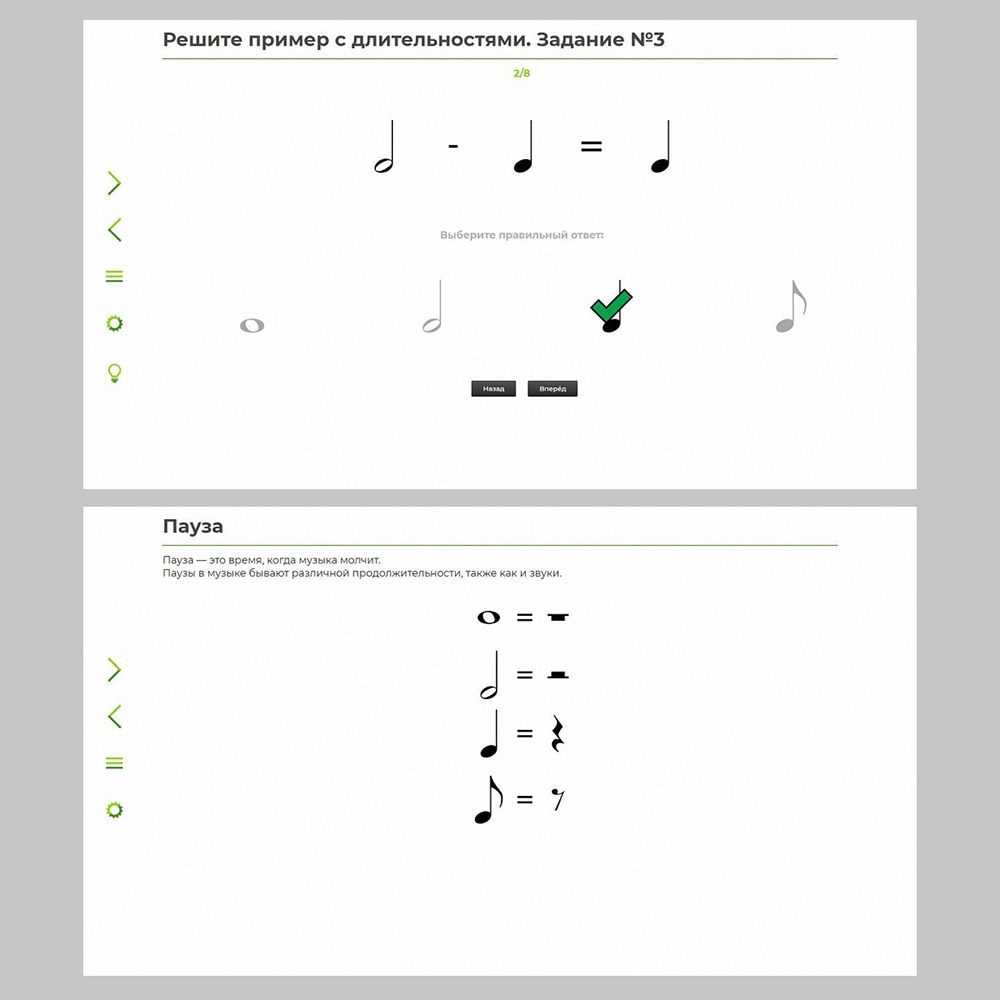 Приложение посвящено одному из самых сложных видов деятельности на уроке сольфеджио – развитию чувства метроритма. Включает в себя большое количество заданий и озвученных музыкально-ритмических упражнений.