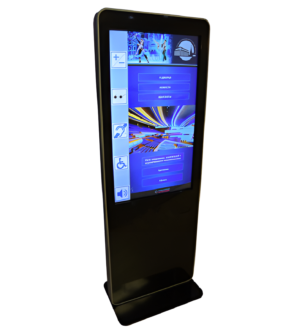 Информационный терминал ISTOK 55P с сенсорным экраном 55’’, со встроенной индукционной системой (для передачи звука на слуховые аппараты), со специальным ПО для инвалидов INVA TOUCH с сенсорным управлением для незрячих людей, с автоматическим озвучиванием текста голосом (МАКСИМАЛЬНЫЙ КОМПЛЕКТ).