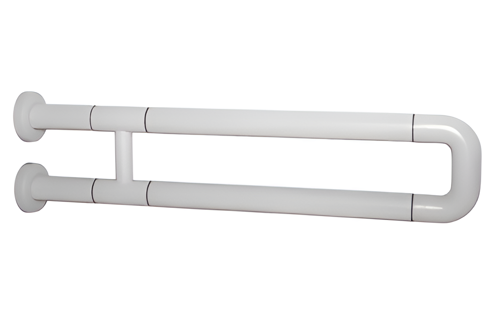 Поручень неоткидной двухопорный с антибактериальным покрытием, алюминий с нейлоновым антибактериальным покрытием.