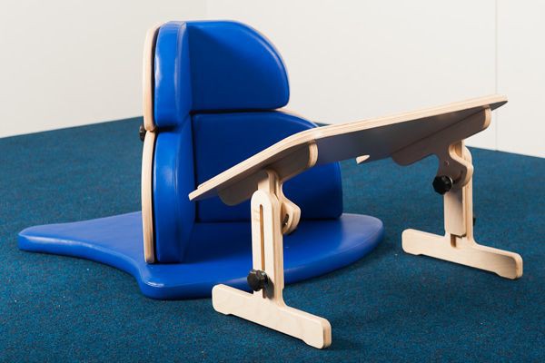 Угловой стул предназначен для позиционной терапии (лечение положением) в процессе комплексной реабилитации. В фиксированном положении ребенок принимает правильную позу. При размещении напольного углового сидения на полу пациент стремится вытянуть ноги вдоль пола, чтобы принять наиболее естественную позу. Чтобы предотвратить скрещивание ног, предусмотрен абдуктор. Положение сидя с вытянутыми ногами и фиксирование тазобедренного пояса, не позволяют пациенту сидеть на крестце, что в свою очередь, предупреждает «круглую спину».