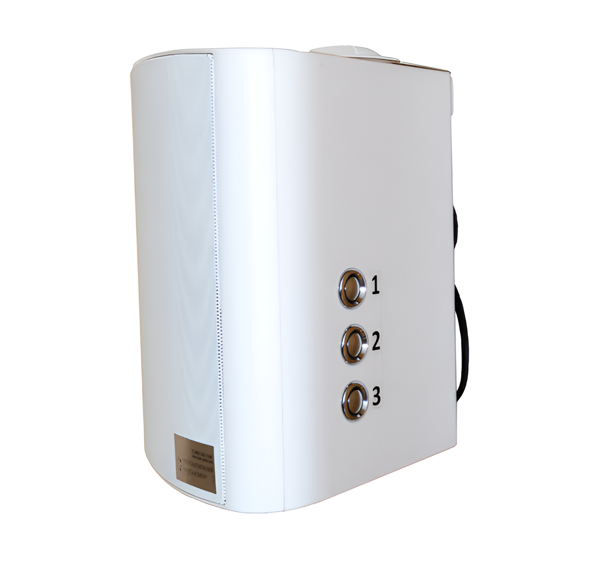 Базовые блоки (звуковые информаторы) размещаются в тех местах учреждения, где есть необходимость сообщить посетителю важную информацию (услуги, риски, пути движения). Динамик базового блока срабатывает при нажатии одной из 3 кнопок на браслете-активаторе, который находится у посетителя.