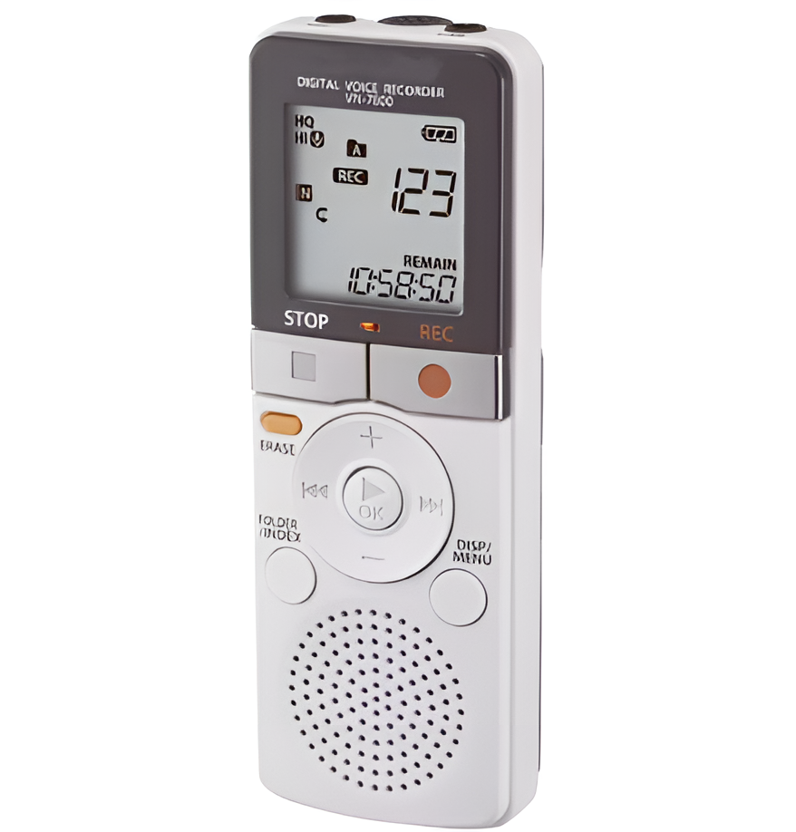 Портативный диктофон с 4 Гб встроенной памяти и функцией автоматической записи при звучании голоса. Имеет один канал записи.