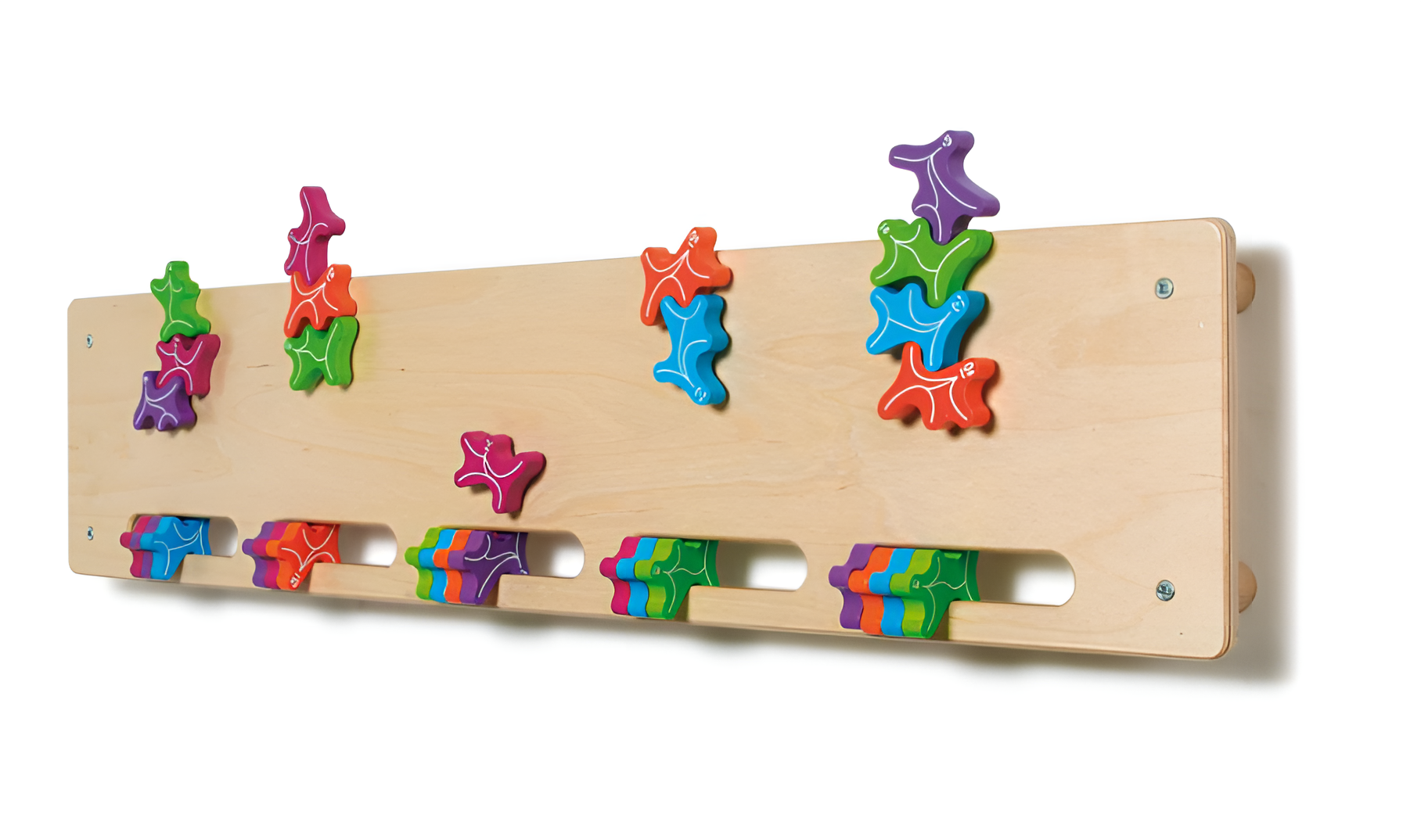 Доска имеет прямоугольную форму и предоставляет дополнительные возможности для применения фигурок-приведений. Доска может фиксироваться на стене или просто располагаться на рабочей поверхности. Благодаря необычной форме фигурок, их можно фиксировать на доске, располагая по определенному признаку (цвет, количество) или просто с целью развития мелкой моторики.