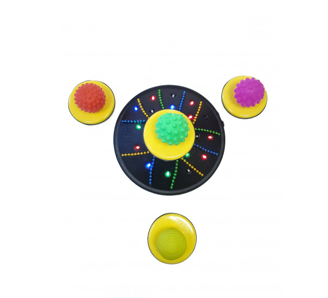 Игра «Текстурированная мелодия» создана для помощи в адаптации детей с ОВЗ и проведения реабилитационных занятий в игровой форме. Устройство помогает развить причинно-следственную связь, окажет необходимую зрительную, тактильную и звуковую стимуляцию детям, которые в этом нуждаются в силу особенностей психического развития. Корпус игры оснащён светодиодными огоньками, цепочками; на возвышении в центре имеется выемка для одного из шаров, входящих в состав набора (все шарики имеют разную текстуру и различаются по цвету). Изготовлено из высококачественного ударопрочного пластика, имеет обтекаемые плавные формы без острых краёв и углов.