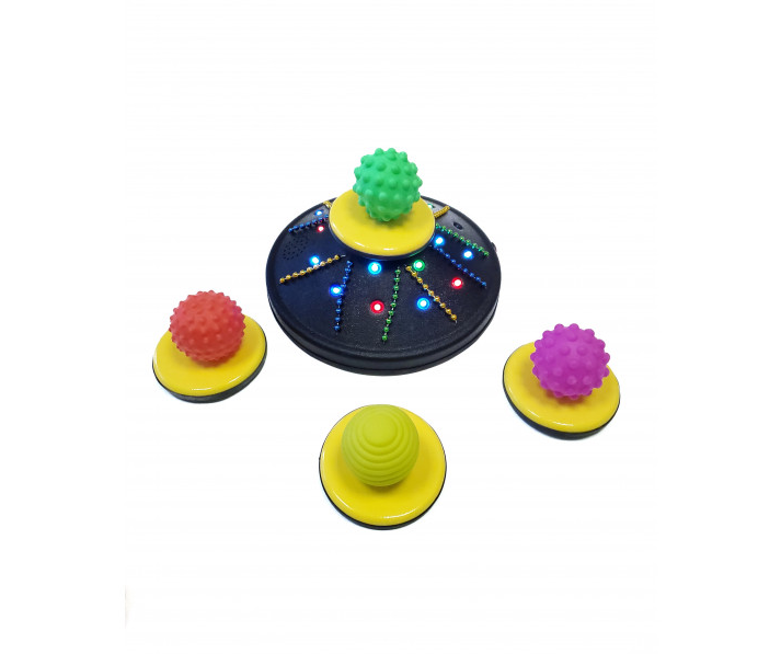 Ребенку необходимо поместить один из шаров в предназначенное для этого место на поверхности устройства. Чтобы включить игру, нужно ударить по шарику. В роли дополнительного оснащения устройства выступают светодиодные лампочки, вибрация и звуковое сопровождение (после включения игры лампочки засияют, устройство завибрирует и включится одна из записанных детских песенок: «Песенка крокодила Гены», «Улыбка», «В каждом маленьком ребенке», «Чунга-Чанга», «Песенка Винни-Пуха», «Облака – белогривые лошадки»).
