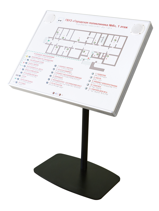 Тактильно-звуковая мнемосхема 610 х 470 в комплекте с наклонной стойкой. Максимальный комплект.