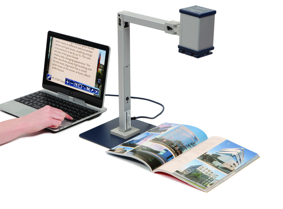 Видеоувеличитель представляет собой легковесную и тонкую конструкцию. Гибкое крепление камеры и подвижный штатив дают возможность рассматривать объекты, с какой бы стороны они не находились. С помощью ClearNote легко читать книги, просматривать фотографии, лежащие на столе, читать текст со школьной доски, а в случае необходимости можно направить камеру на себя, чтобы, например, сделать макияж. Прорезиненное основание подставки надежно удерживает устройство на поверхности стола. В случае необходимости видеоувеличитель легко разбирается, упаковывается в сумку, входящую в комплект, переносится и собирается на новом месте. Компактный пульт управления имеет достаточную длину кабеля для комфортного использования на рабочем месте. Подключить видеоувеличитель и установить программное обеспечение можно на компьютер даже с минимальными параметрами, управляемый операционной системой семейства Windows.