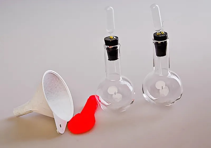 Прибор состоит из 2-х колб с принадлежностями, одна из которых используется для проведения реакций без выделения газа, другая – с выделением газа.