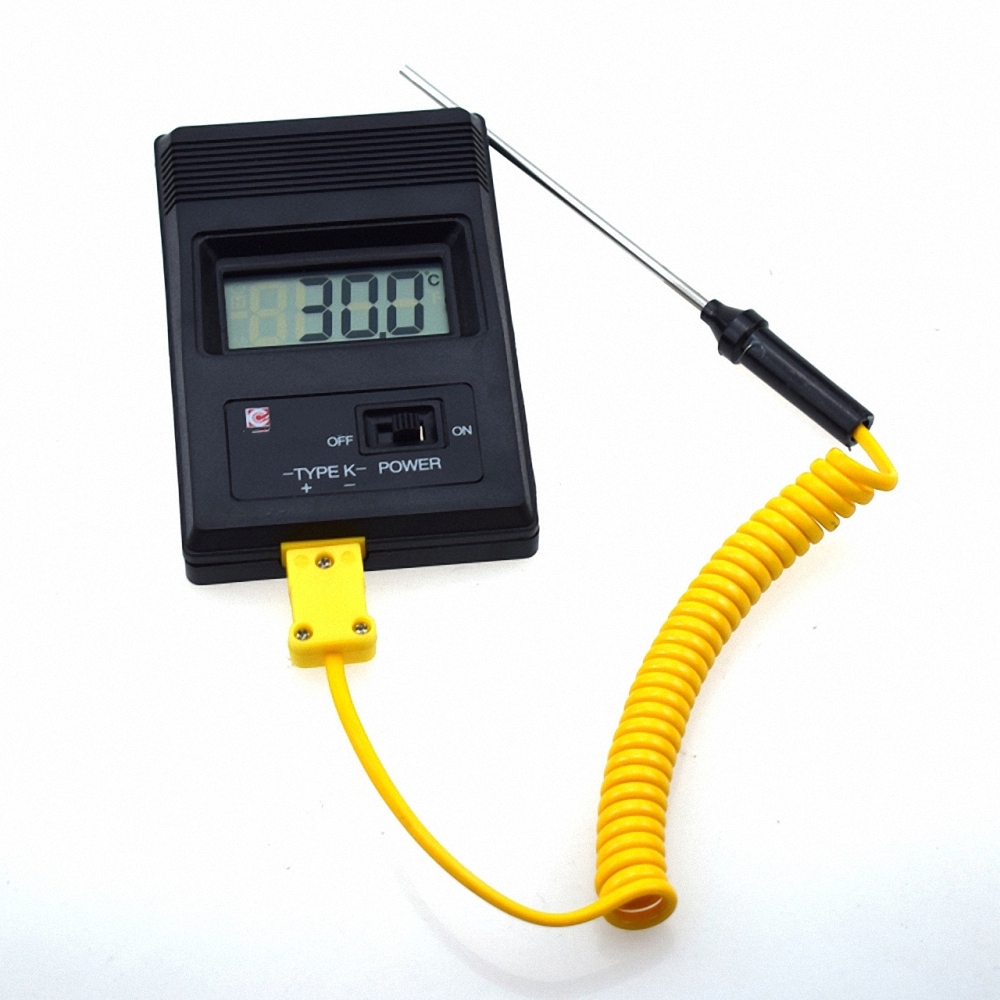 Термометр состоит из корпуса с 4-х разрядным цифровым индикатором, соединительного кабеля с металлическим измерительным щупом длиной ≈ 85 мм, питание прибора батарейка - крона.