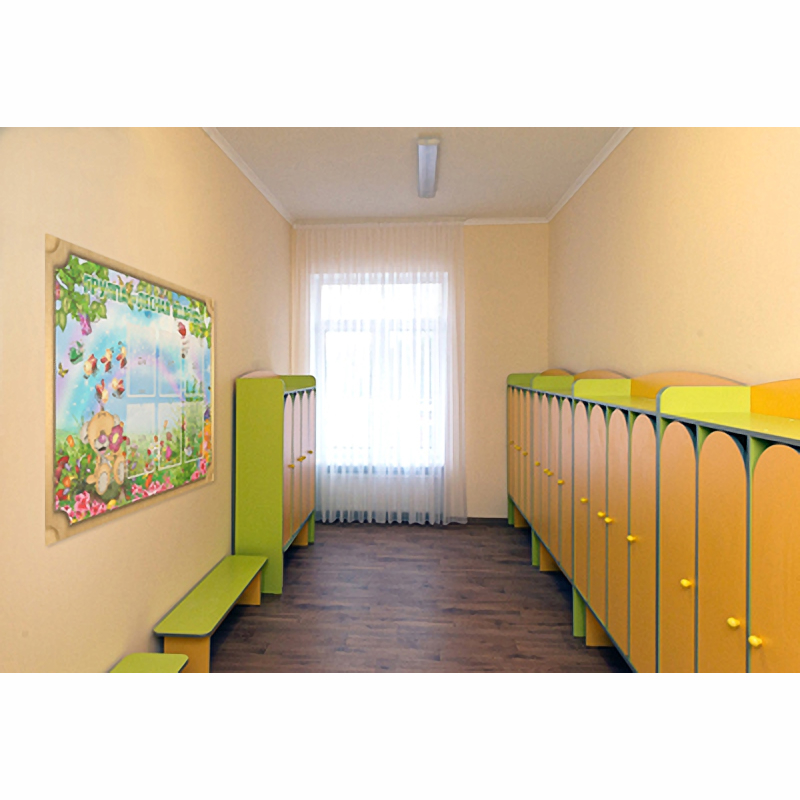 Необычный дизайн стенда подарит радостное настроение взрослым и детям. Стенд большого размера, оформлен в коричневую рамку. Имеет два ряда информационных карманов. Карманы прозрачные, предполагают размещение любой информации из-за отсутствия названий. Актуальным будет поместить информацию о режимных моментах группы, контактных телефонах воспитателей, списке группы. Стенд оформлен в лесной тематике: медвежонок сидит на поляне и собирает букет нежных цветов. В небе летают божьи коровки. Малыши могут не только любоваться красивым стендом, но и учиться произносить буквы, читая его название.