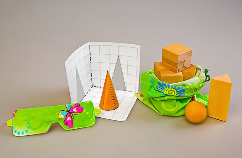 Игровой комплект предназначен для сенсорного развития дошкольников и младших школьников, способствует развитию тактильной чувствительности, пространственных представлений. Предлагаемые в наборе карточки с изображениями проекций фигур в трех плоскостях помогут ребенку освоить основы конструирования и геометрии.