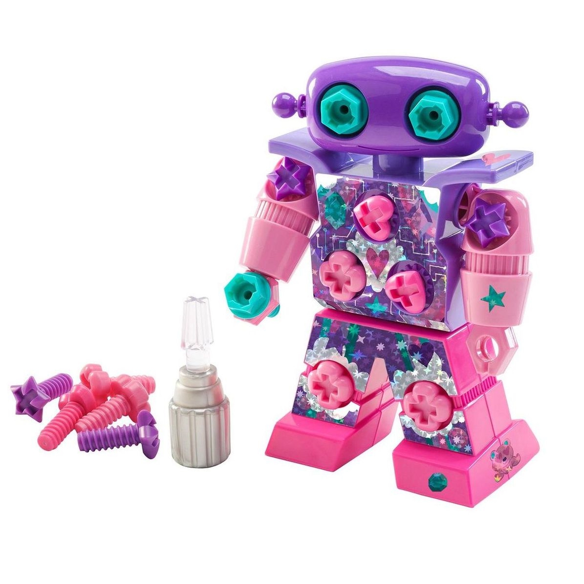 Развивающая игрушка "Закручивай и учись. Робот Искорка" (розовый, с ручной отверткой)