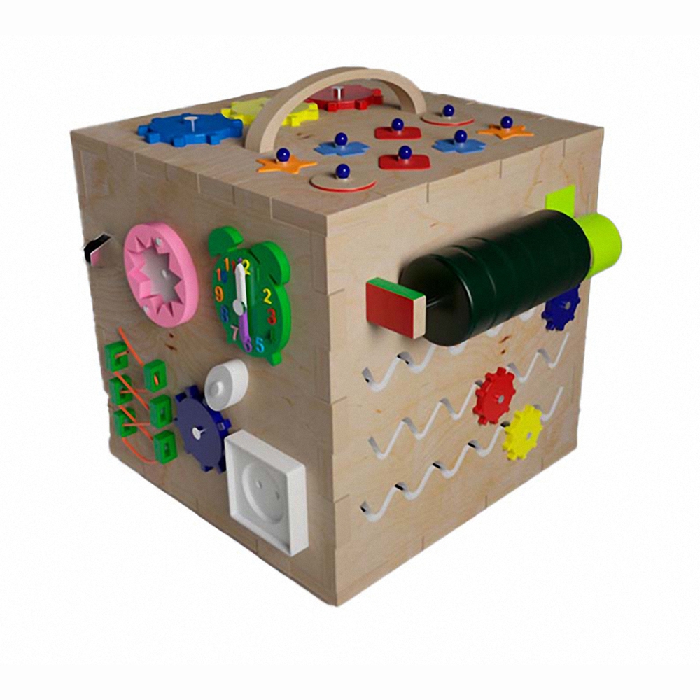 Развивающий деревянный бизикуб позволяет ребенку познакомиться внешним миром, удовлетворить детское любопытство, а также улучшить воображение, мелкую моторику, логику, научиться быть усидчивым и сконцентрированным на одном деле, различать цвета, формы, буквы и цифры. Также бизикуб сочетает в себе высокое качество, исключительную полезность и доступную стоимость.