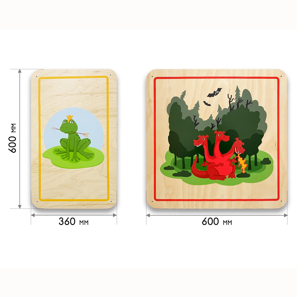 Дополнительные модули бывают однотонные и с тематическими иллюстрациями, подходящими под тематику дидактических панелей. Разнообразие размеров способствует декорированию стен различной конфигурации и масштабов. Параметры варьируются от совсем маленьких модулей 300х300 мм до крупных размеров 600х600 мм.