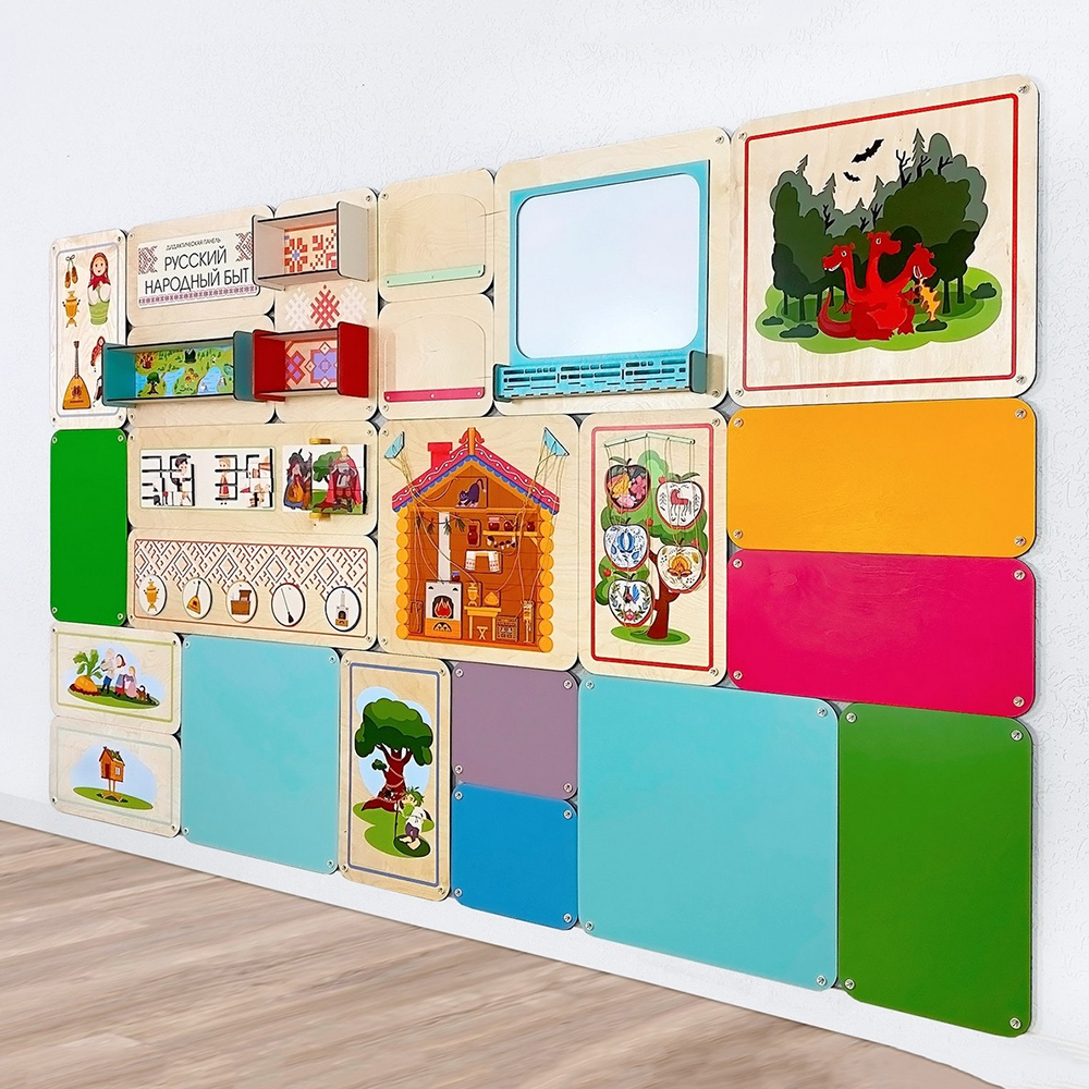 Набор дополнительных модулей для комбинации с дидактическими настенными панелями. Отличное интерьерное решение для оформления помещений в едином стиле.