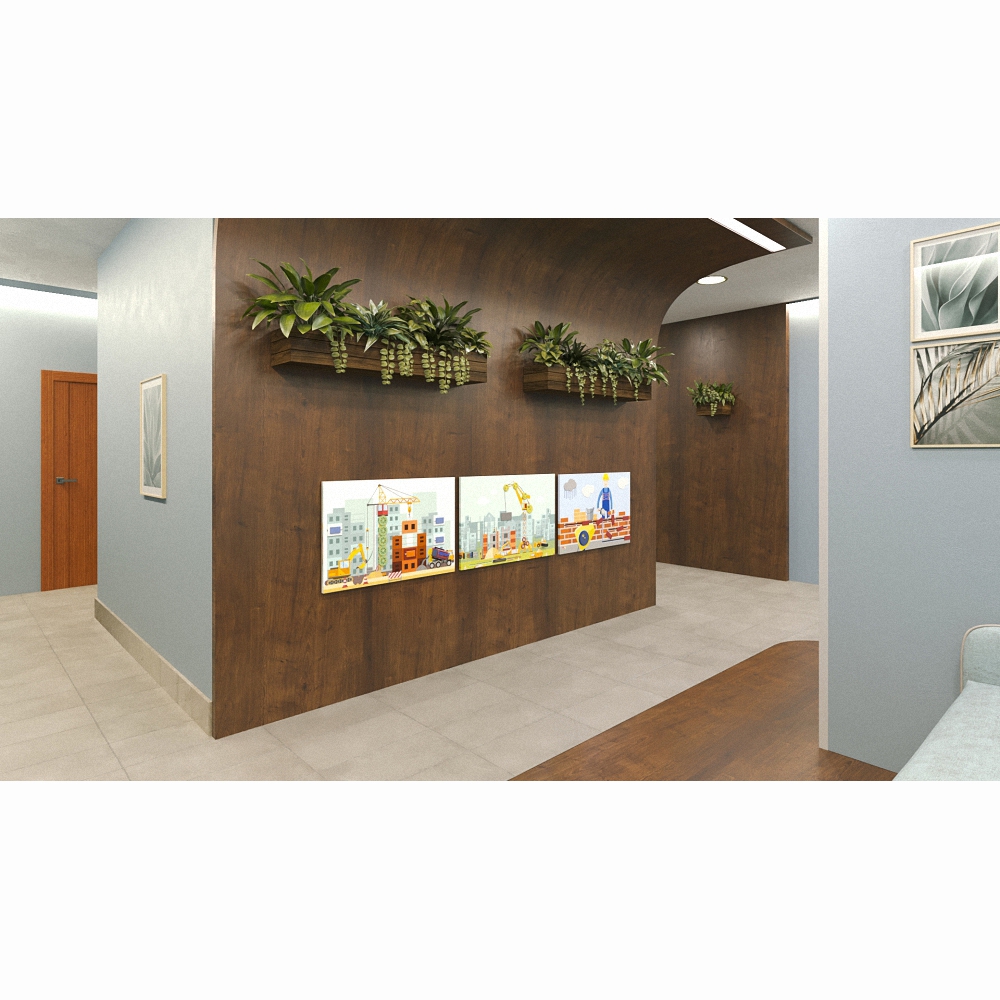 Комплект настенных панелей «Стройка» состоит из 3-х прямоугольных частей; они выполнены в одном размере и оформлены в одной цветовой гамме. На каждой панели изображены части стройки с разных ракурсов. Безопасно крепятся к стене, покрытие панелей наивысшего качества обеспечит безопасность при игре.