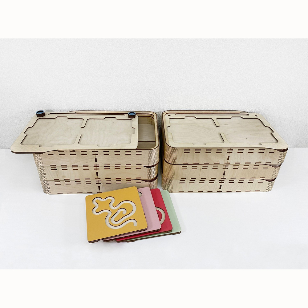 Это нейроигрушка для развития межполушарного взаимодействия. Состоит из коробки-основания и цветных лабиринтов-вкладышей. Два лабиринта с зеркально изображёнными картинками устанавливаются в пазы, и ребёнок проходит их с помощью специальных пальчиковых фишек.