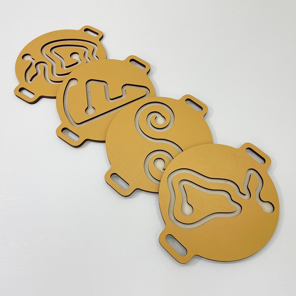 Лабиринты изготовлены из берёзовой фанеры и окрашены стойкими к выцветанию полиуретановыми красками без запаха. Сверху всё покрыто огнестойким лаком Renner.