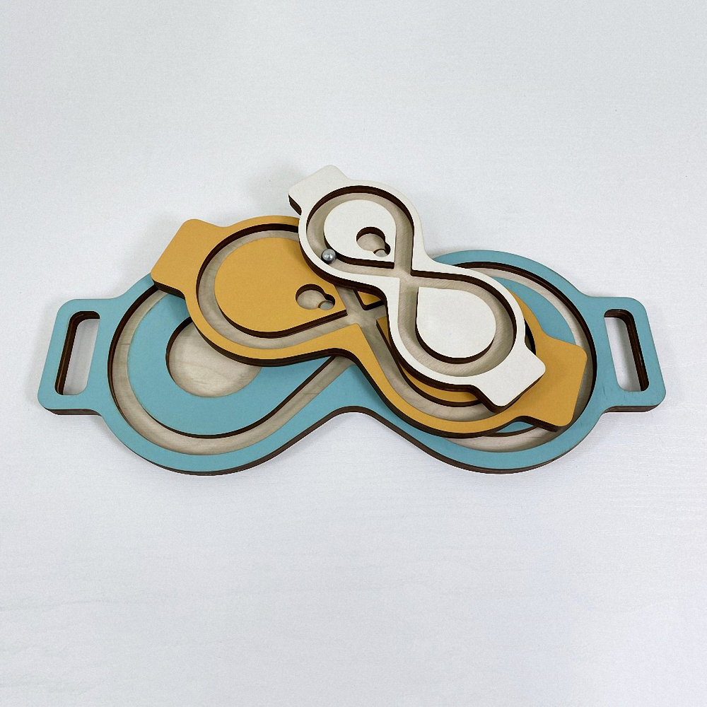 Балансир-лабиринт для развития мозга и снятия эмоционального напряжения. Представляет собой положенную набок восьмёрку с металлическим шариком, который можно катать, наклоняя лабиринт в разные стороны.