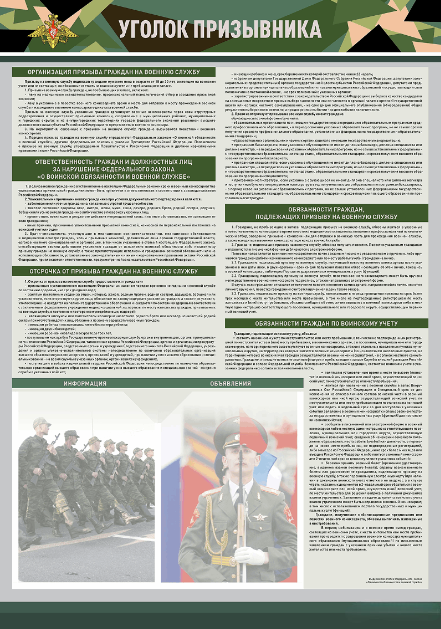 Стенд-уголок предназначен для наглядного отображения информации о военном призыве и службе в армии.