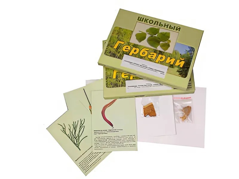 Перечень натуральных образцов: водоросль бурая, водоросль зеленая, вешенка, трутовик, хлебная ржавчина, лишайник олений, лишайник пармелия, лишайник стенная золотянка, мох сфагнум, мох Шребера, мох кукушкин лен, исландский мох, папоротник, хвощ, сосна, тысячелистник, шиповник.