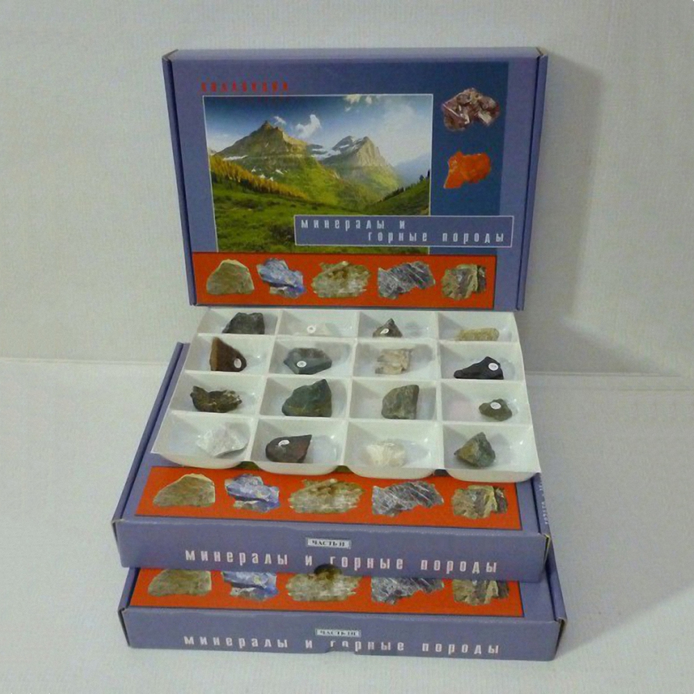 Коллекция "Минералы и горные породы" (48 видов) предназначена для использования в общеобразовательных учреждениях в качестве демонстрационного материала на уроках химии, географии, природоведения и для кружковой работы.