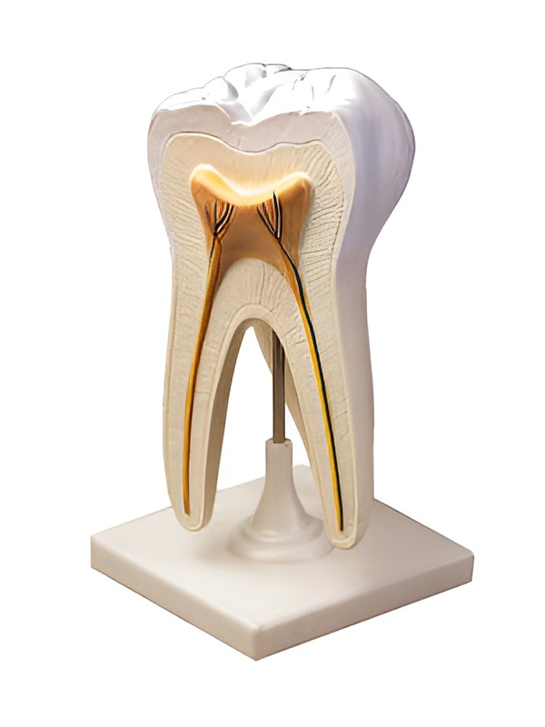 Модель демонстрирует внешнее и внутреннее строение зуба.